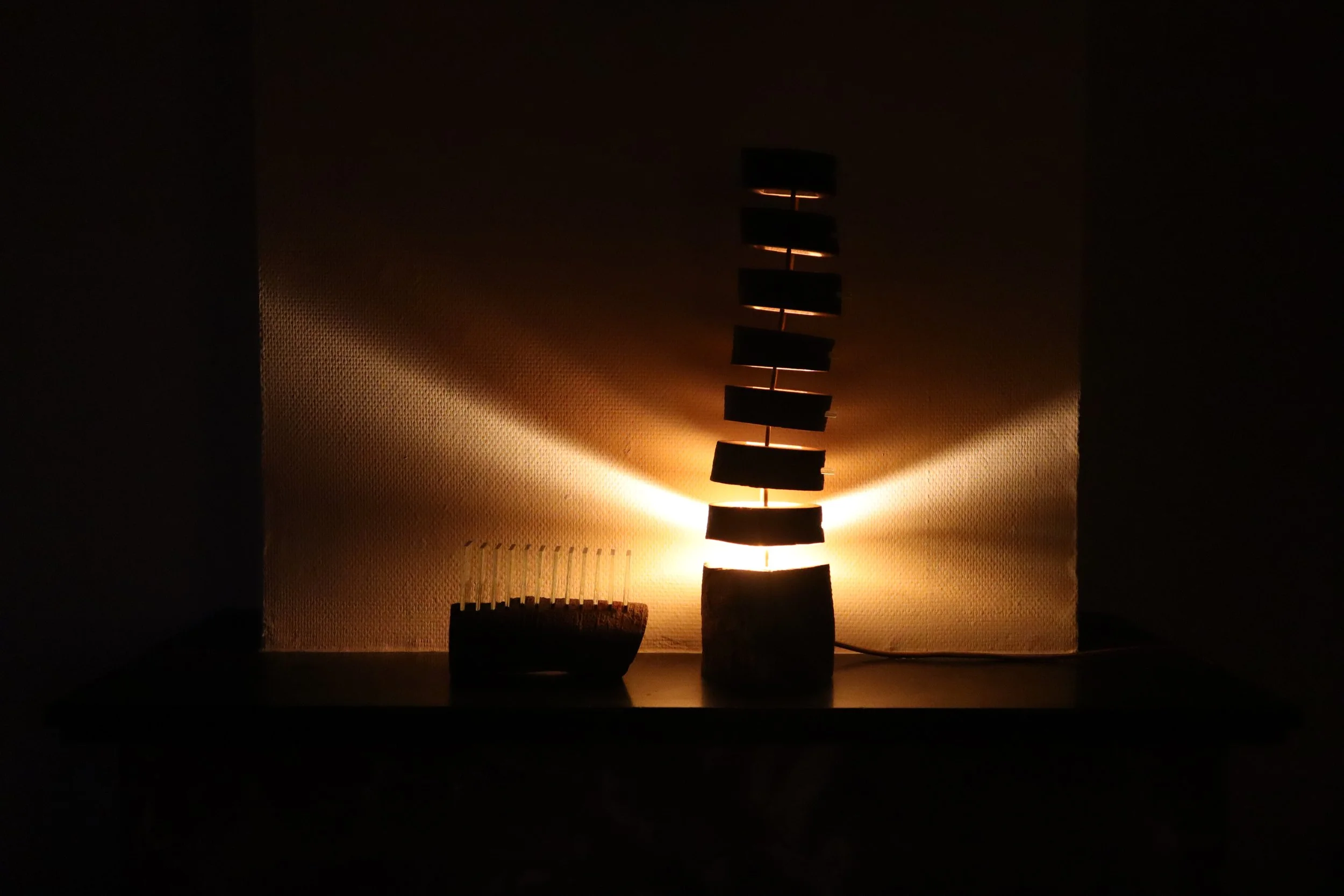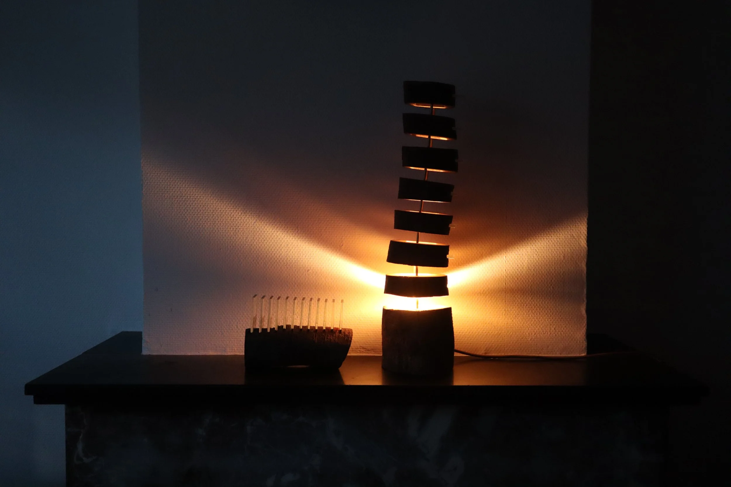 Entering a new phase in his life and closing the door on his nightlife chapter in which he had a prominent role with his bar and club, it was about time to look back and give it the place it deserves. So the girlfriend asked me to make him and ode. It became a tree of life, with slides projecting memories of the way they were. He can play with the memories and switch them up, thus changing the projection of the lamp and creating new memories while doing so.